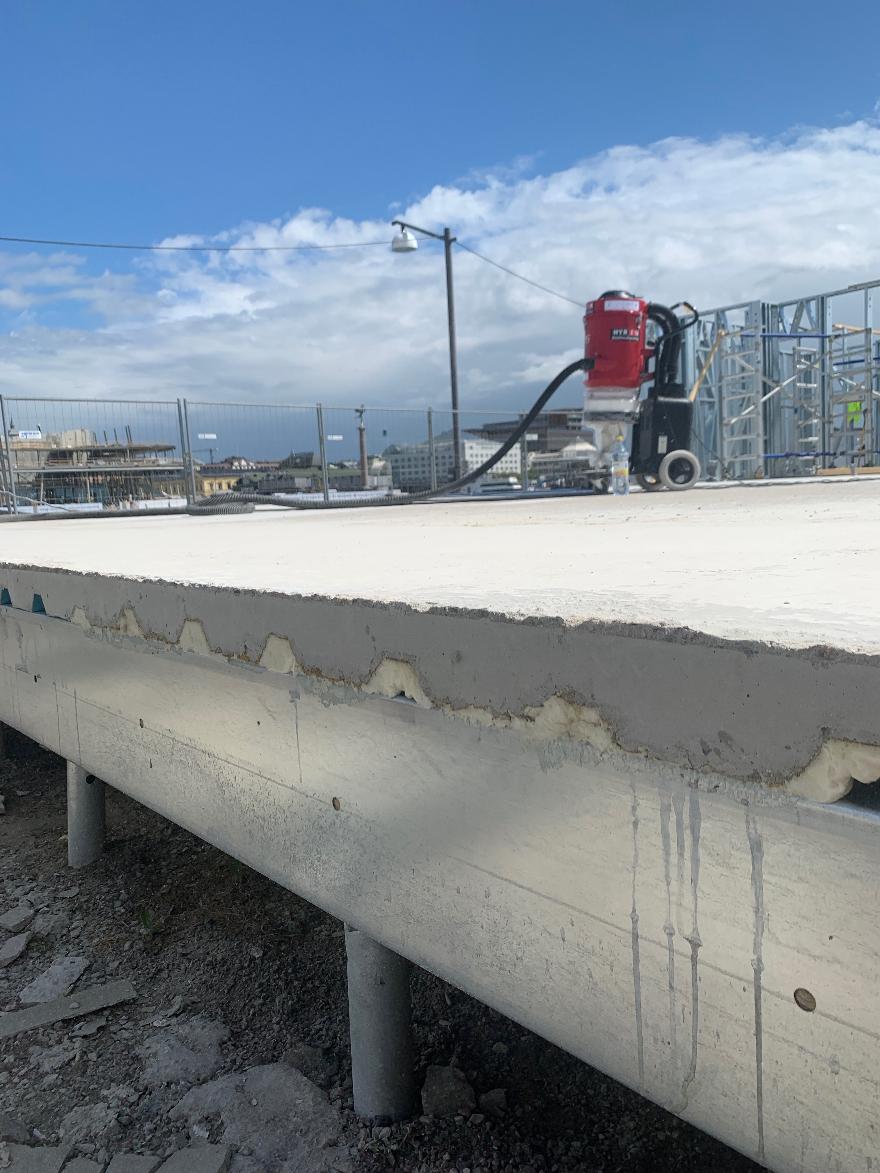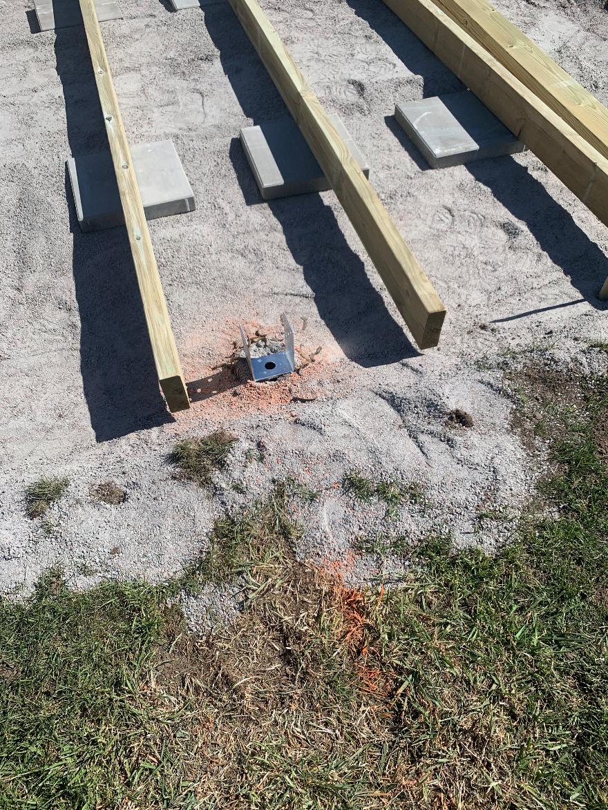 Montering av markskruv som ska bära ett hus som i detta fallet är en resturang.