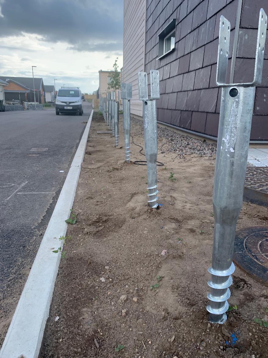 Montering av stolpskruvar för staket.